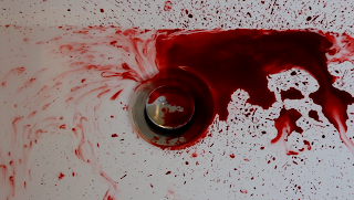 In this scene we used red food colouring to represent the blood, we had quite a challenge filming this, as the bathtub was quite small and Eyes who shot didn't want to get food colouring on her clothes and we also have to be careful on not getting the camera wet. So we only had 2 angle for this scene.